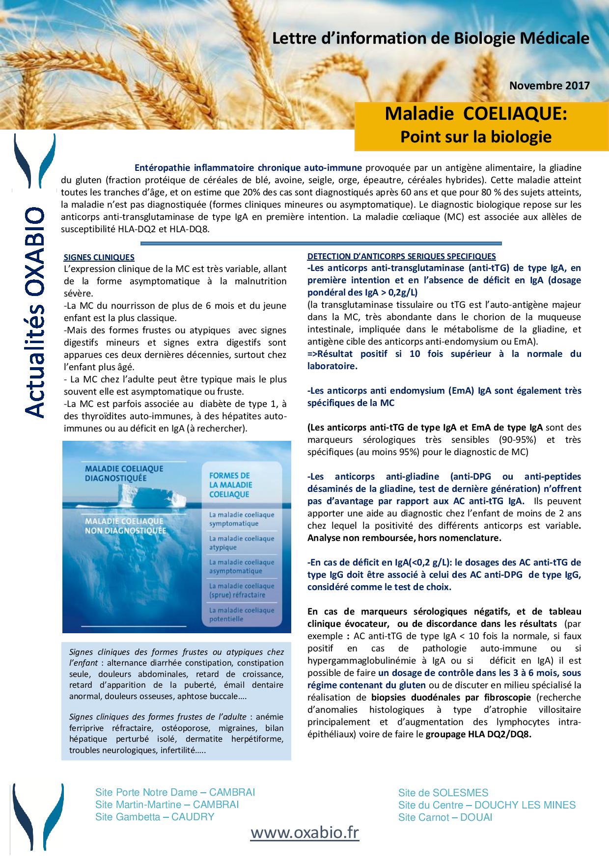 Lettre d'information médicale : Biologie de la Maladie Coeliaque