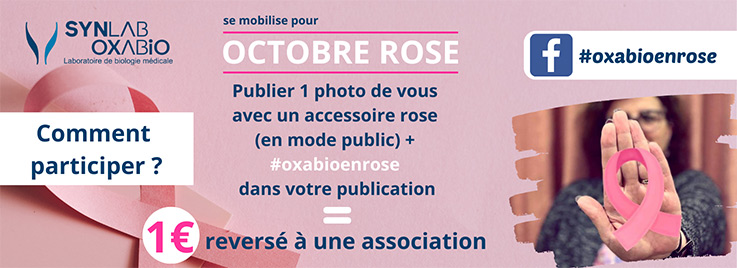 - 1 photo=1€ : sur votre profil Facebook, vous publiez une photo de vous, (ou de votre chat :)) avec un accessoire rose + #oxabioenrose en mode public. Nous reverserons à chaque photo publiée, 1€ à l'association. Partagez, invitez vos amis à participer ! Vous pouvez aussi publier plusieurs fois !